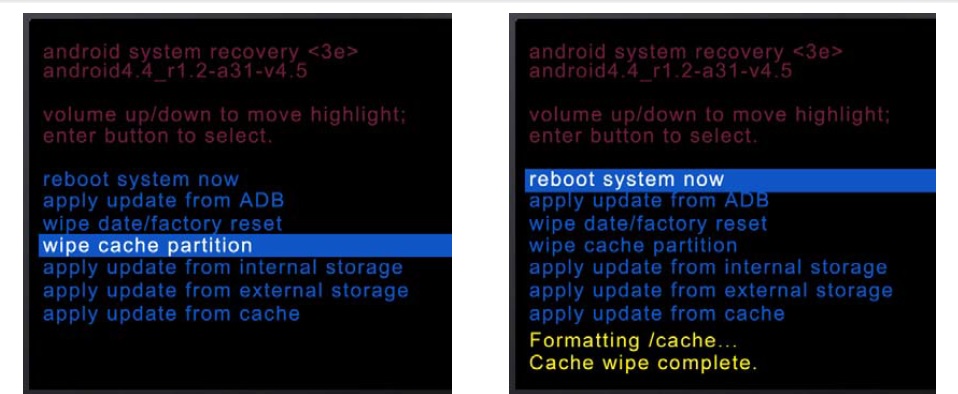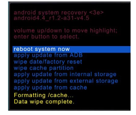 6- Select “wipe cache partition”, confirm to perform this operation, and then return to the previous interface.