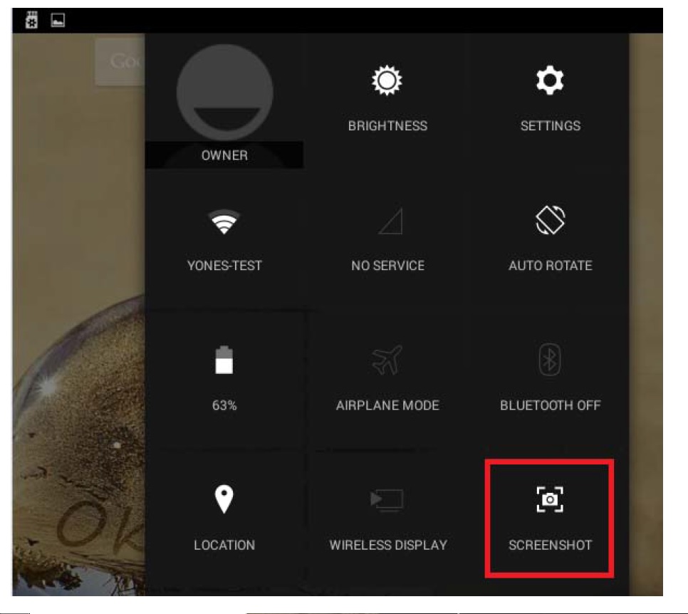 The device has two screenshot methods ,drop-down menu in the upper right corner there is a screenshot of the shortcut icon, or use the key combination [Power and volume+ key] while pressing these two key screen will automatically shots, screenshots will be saved in the photo / screen shoot folder.