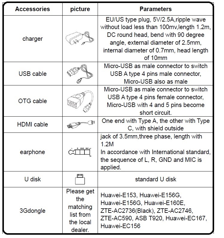 The device's USB OTG interface can accept an external power supply, when accepting power from the USB port charger, regardless of the boot, sleep or shutdown, the system software set the charging current as 800mA. Under shutdown and sleep, it will take approximately 8 hours from 0 to 100% full charge; in normal working condition, because the system working requires 0.7 ~ 1.2A current, it’s often not enough for the system with the USB charger supplying 800mA, there is no redundant power supply to charge the battery.