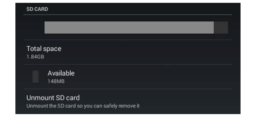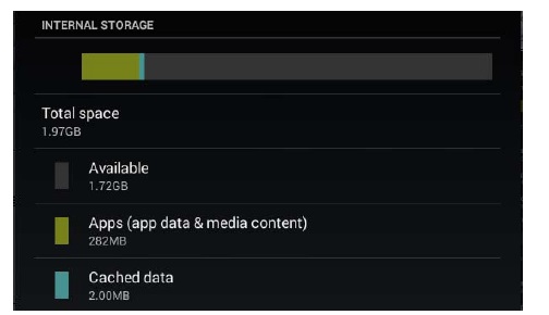 The following figure shows the screenshot section Data Partition (data partition) which is composed of the size and capacity, the remaining free space determines how many APK you can still install.