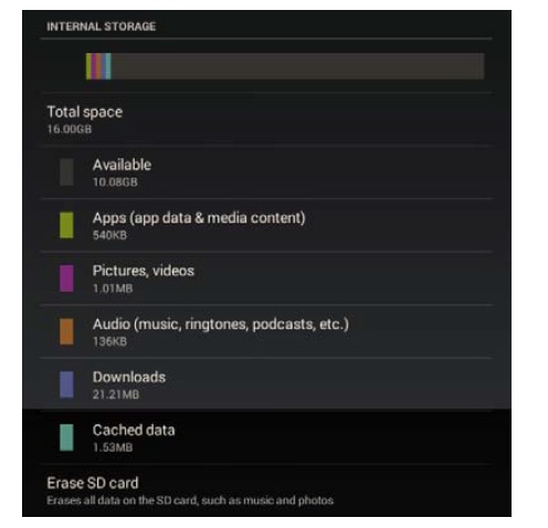 The following figure shows a screenshot of built-in storage space capacity, capacity FLASH above 16GB consists of inner card and internal storage in two parts.