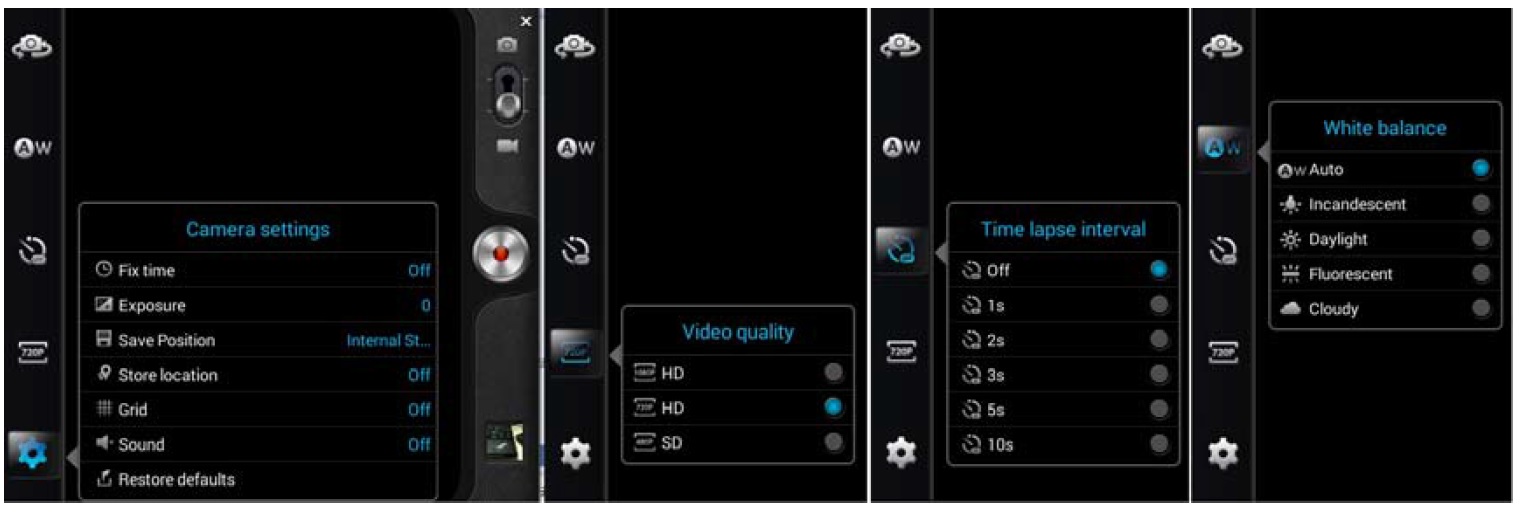 The following is the function list of the rear cam: white balance, time lapse and video quality could all be set.