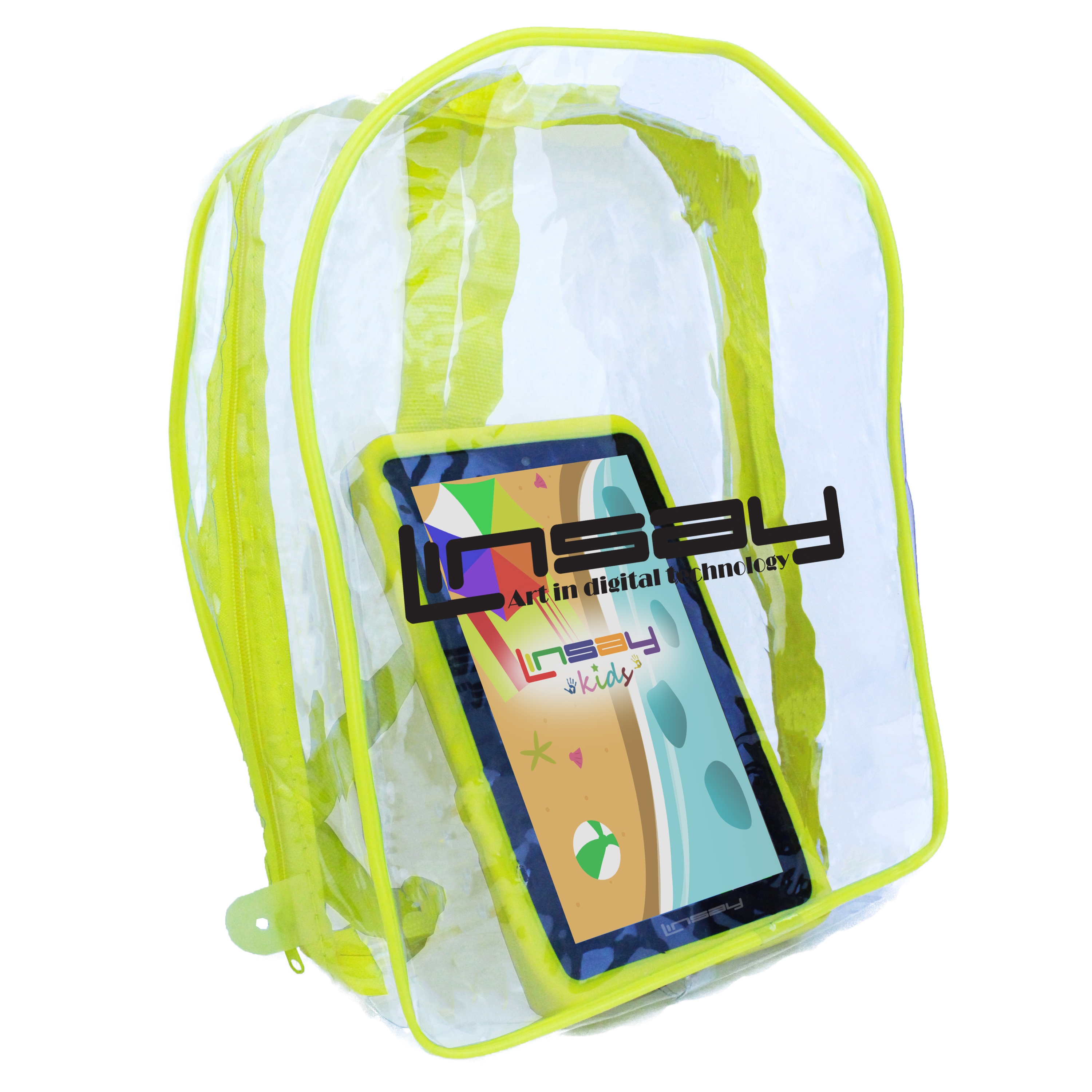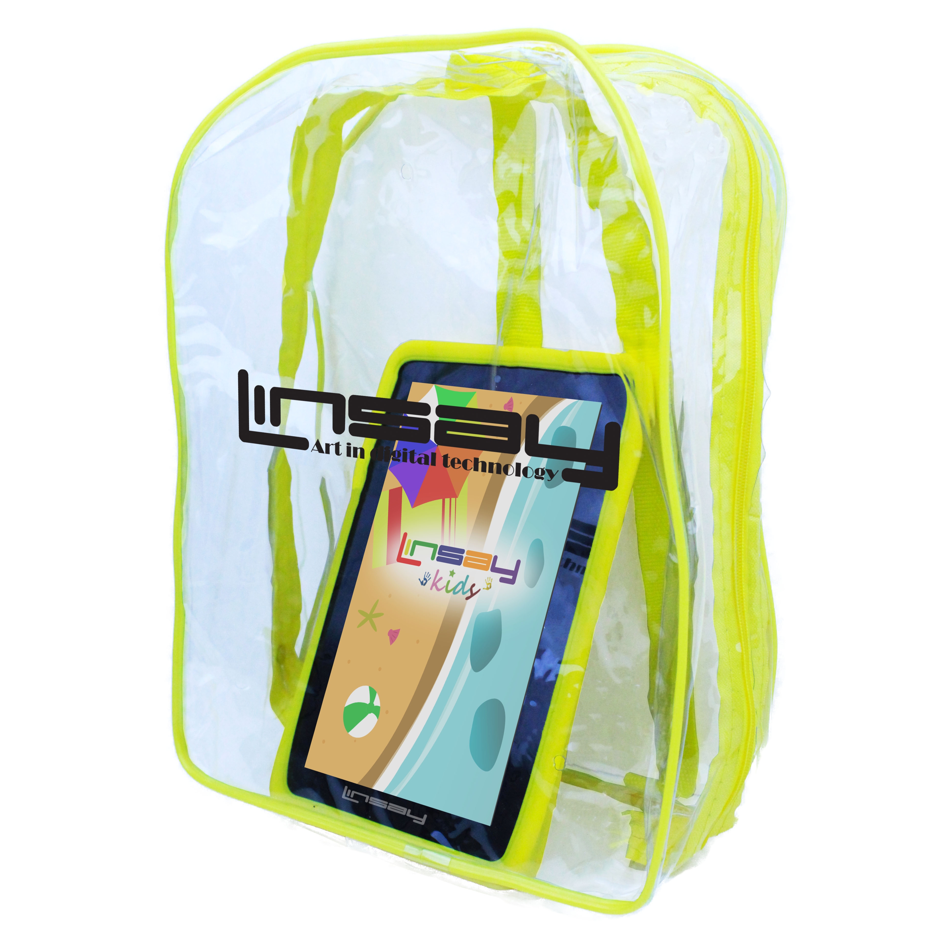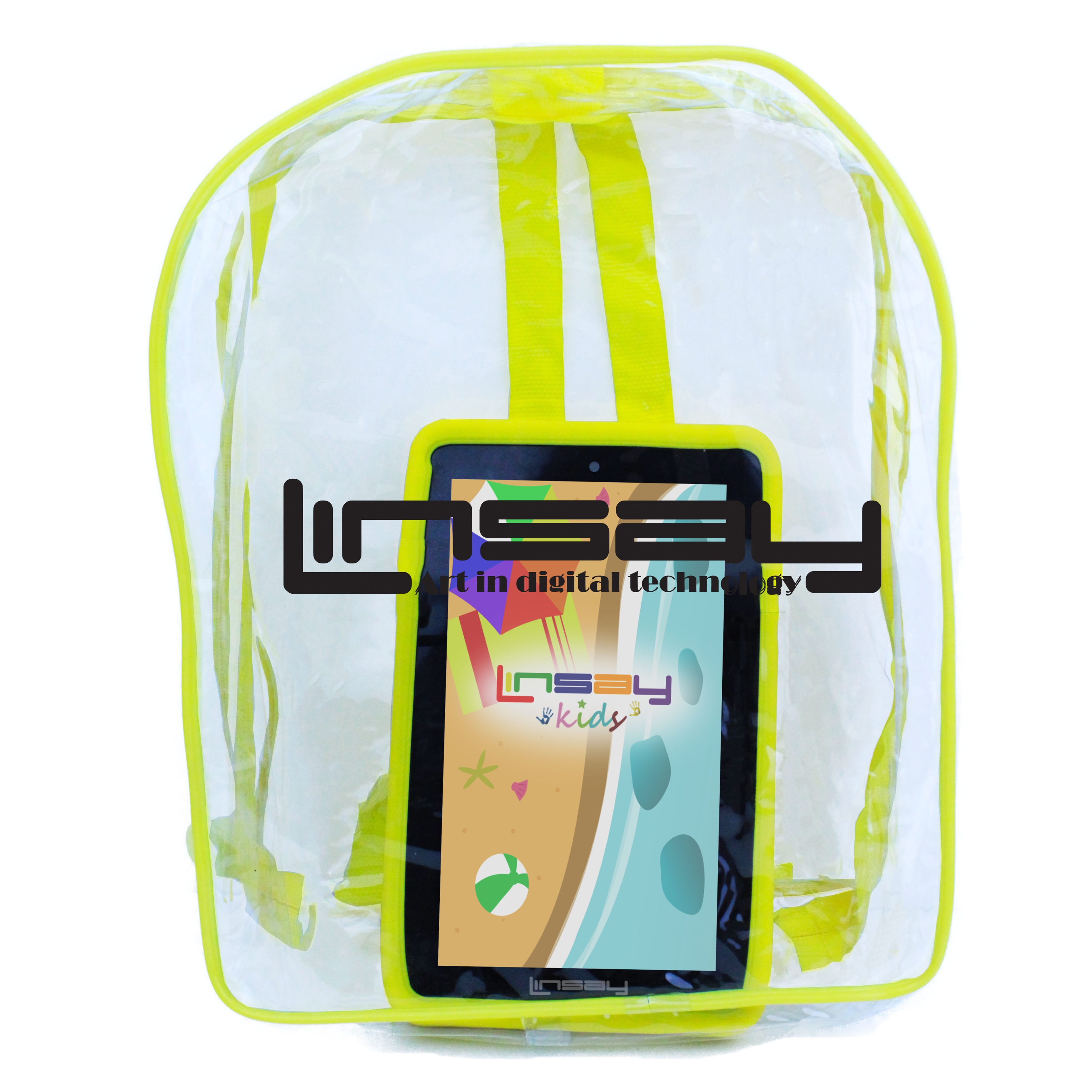 LINSAY F-7XHDKIDSBAG has a high resolution display 1024x600 HD Panel Screen widescreen 16:9 for an incredible multimedia experience. It also has a Built in Front Web Camera 0.3Mp for Video Live chat and a 2.0Mp Built in Back Camera to take stunning photos and videos.