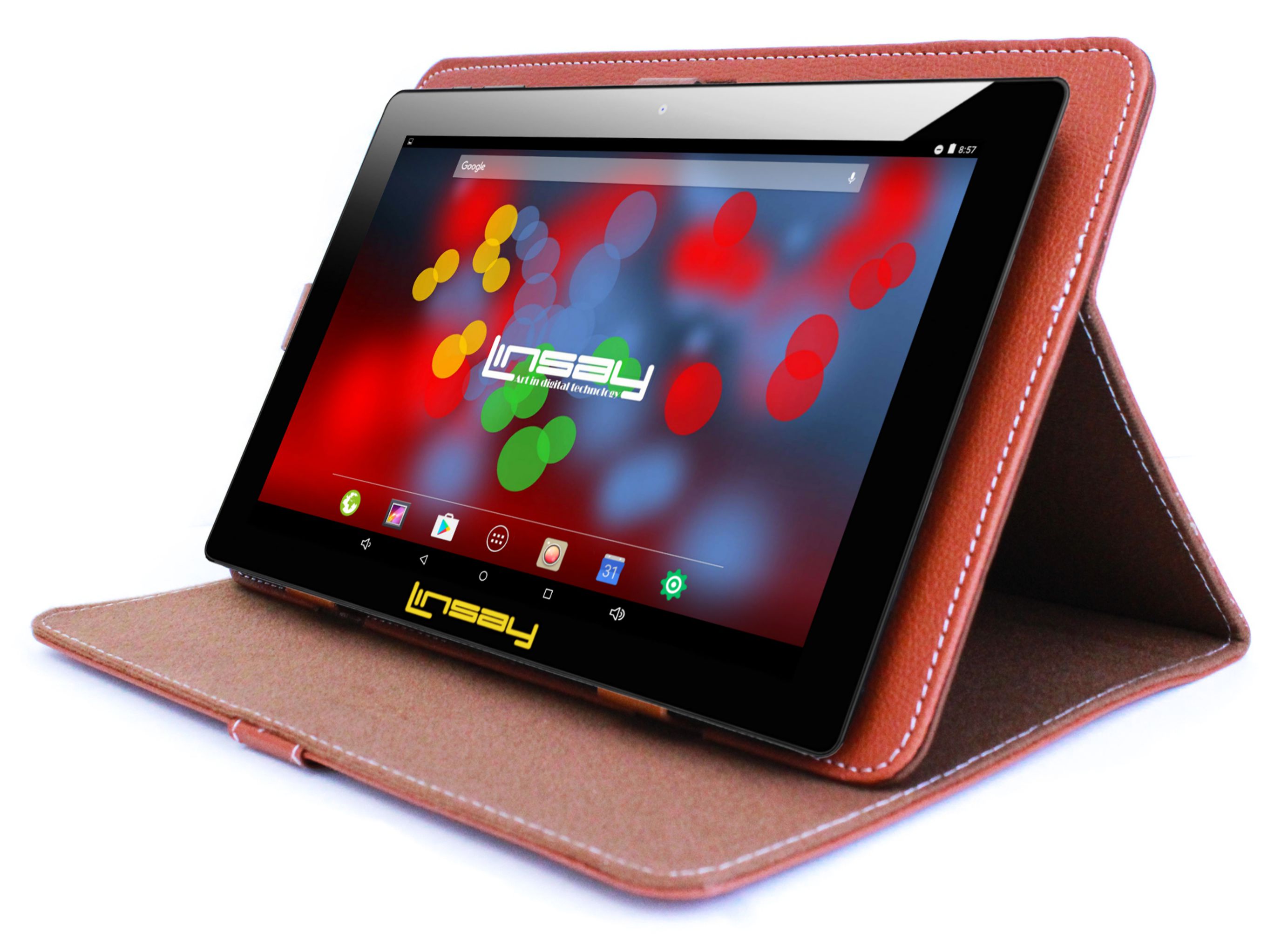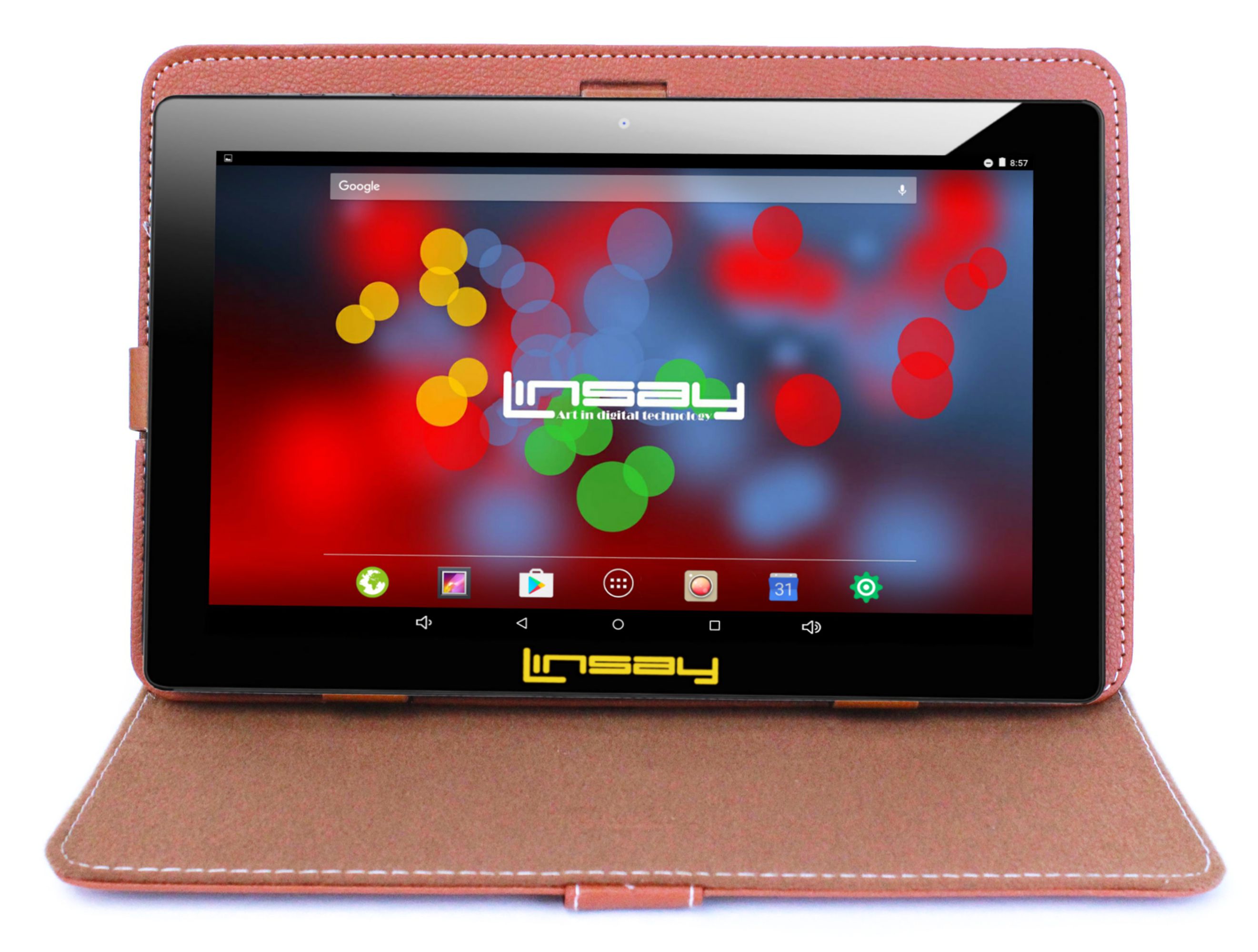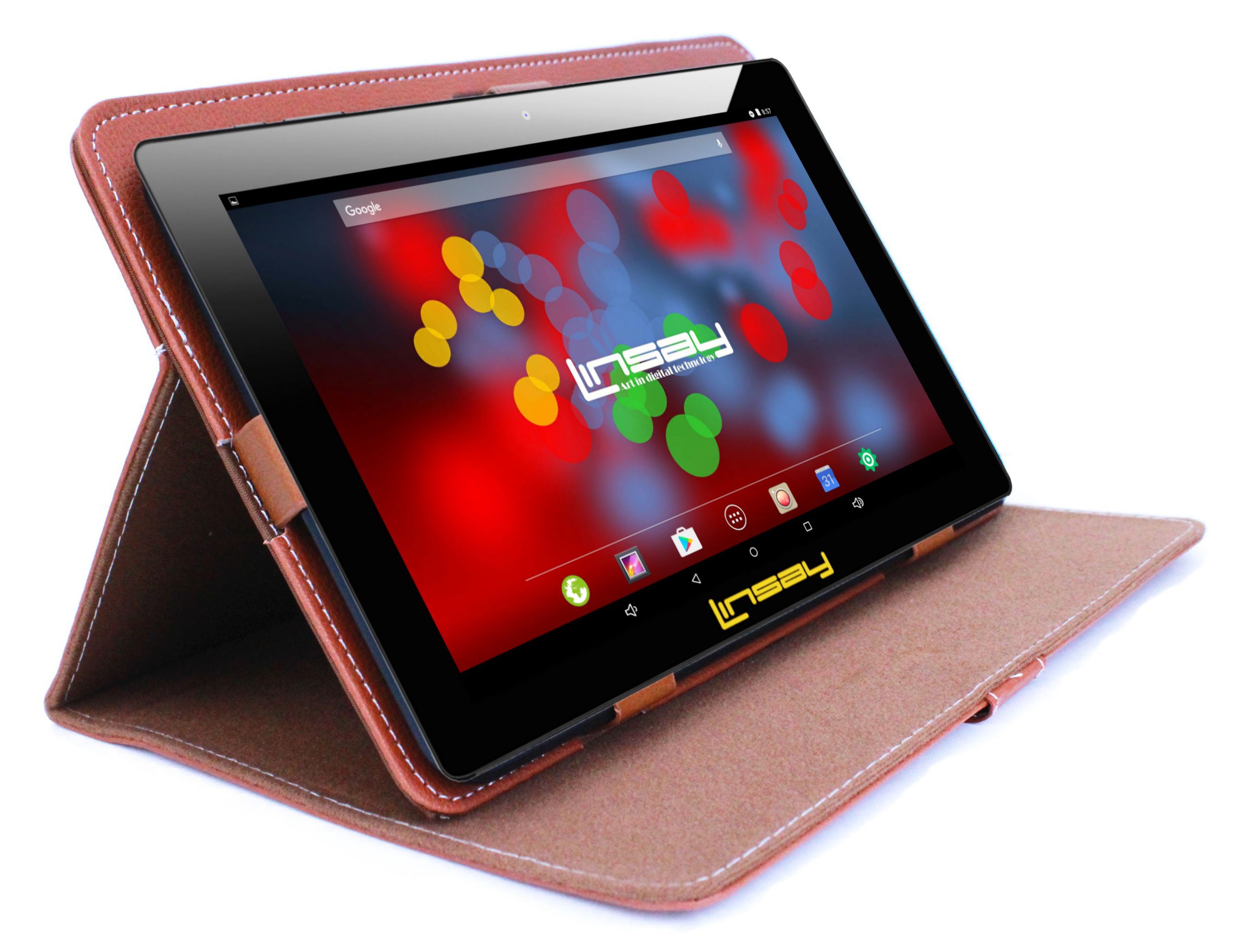 LINSAY F10XIPSBCBROWN has a high resolution display 1280x800 IPS Panel Screen widescreen 16:9 for an incredible multimedia experience. It also has a Built in Front Web Camera 0.3Mp for Video Live chat and a 2.0Mp Back Camera for taking Pictures and Videos.