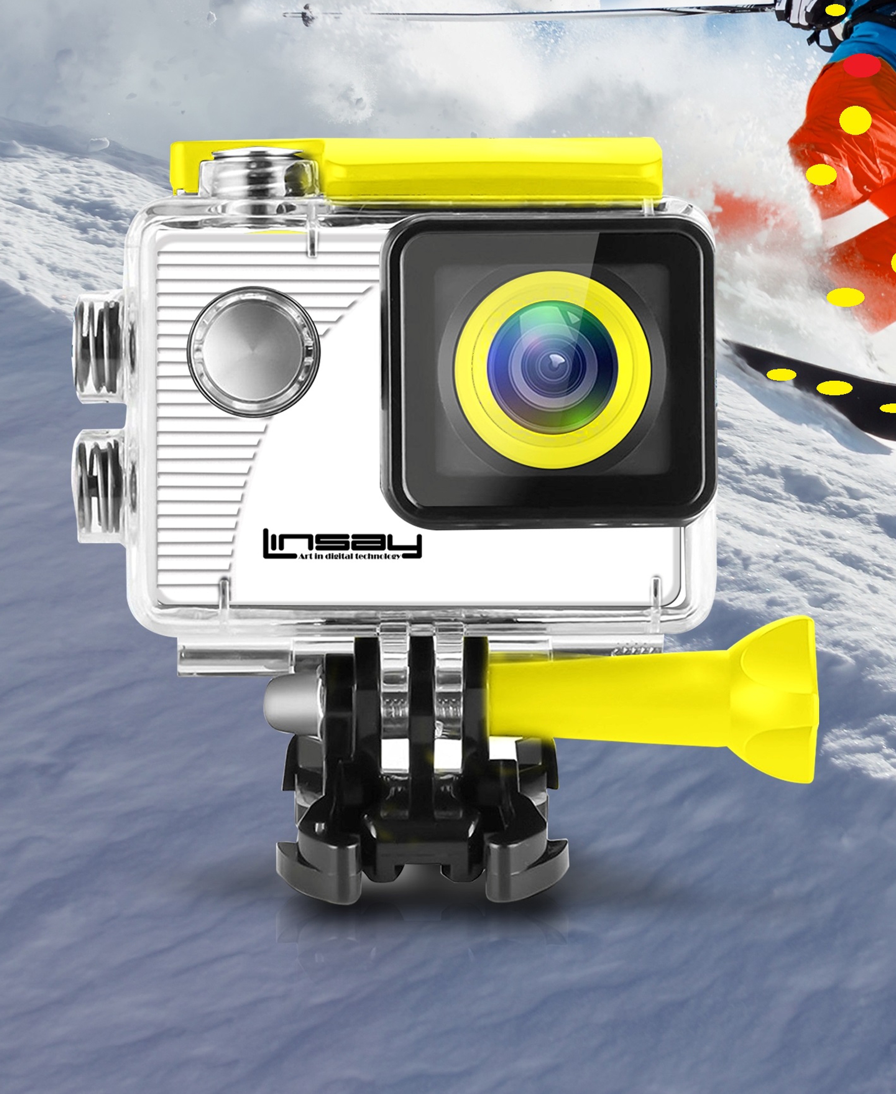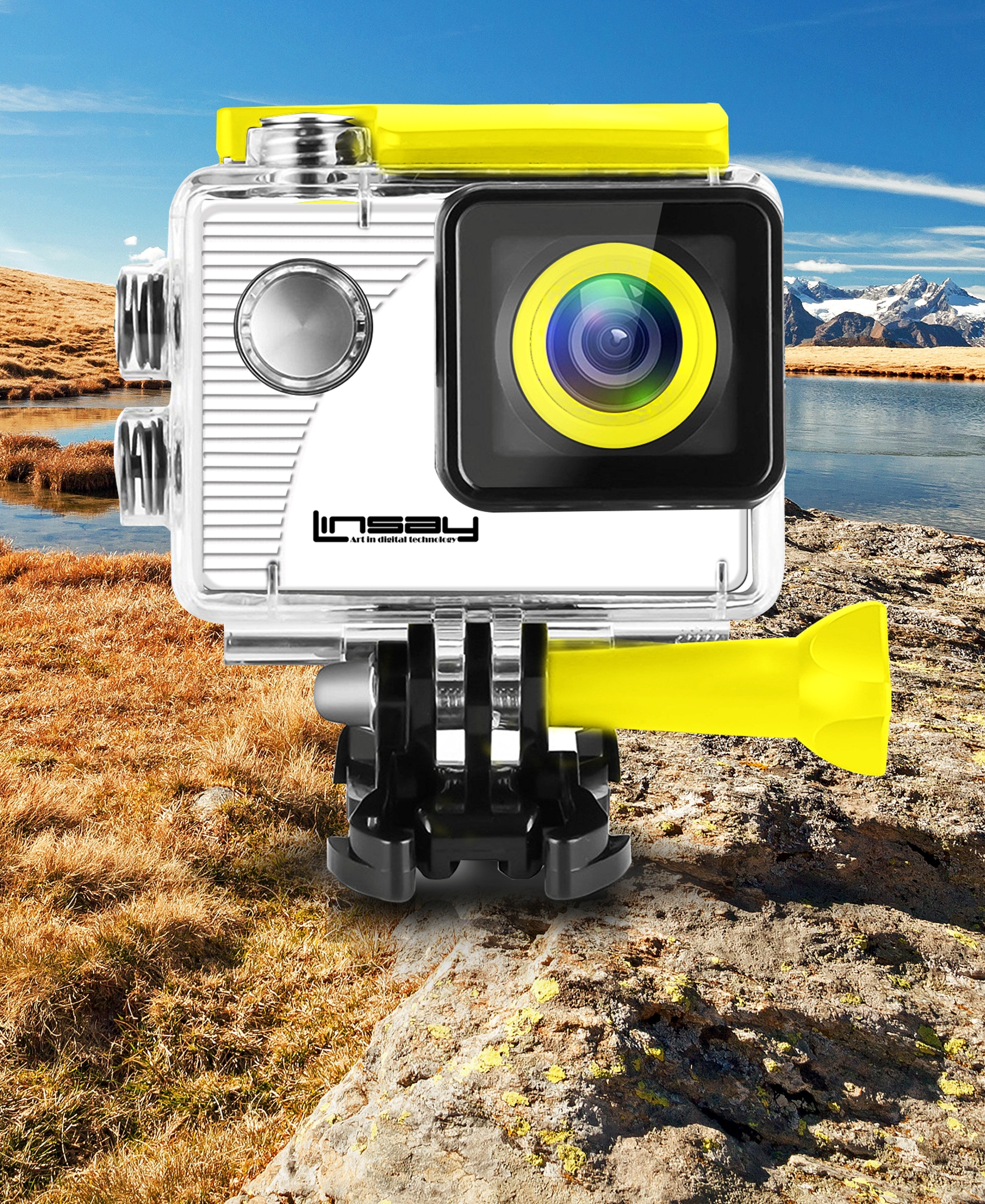 LINSAY KIDS Funny Action Camera gives your children the best videos and shots when they are biking around the neighborhood, Playing in the snow ,sledding down a hill, or making splashes at the pool. LINSAY X5000AY is a great first video camera for kids and is durable enough to handle drops and tumbles. The LINSAY Camera records TRUE 720p HD video, plus can capture 5-megapixel HD images. LINSAY Funny Kids Action Camera is equipped with an integrated 2.0 inch LCD screen, built-in rechargeable battery, microSD card slot, and a fixed-focus lens. LINSAY Funny Kids Action Camera includes waterproof case, no worries for your camera taking in water fill with joy of beauties in underwater world; also includes: kits mount for bike and helmet, perfect protection from rocks, dust and scratches; your kids can take this LINSAY camera wherever their little heart desires. The KIDS Sport Action Camera LINSAY X-5000A is ideal for Snow, its weatherproof - Splash proof, Mountable in Helmet and Handlebar Seat post Mount
