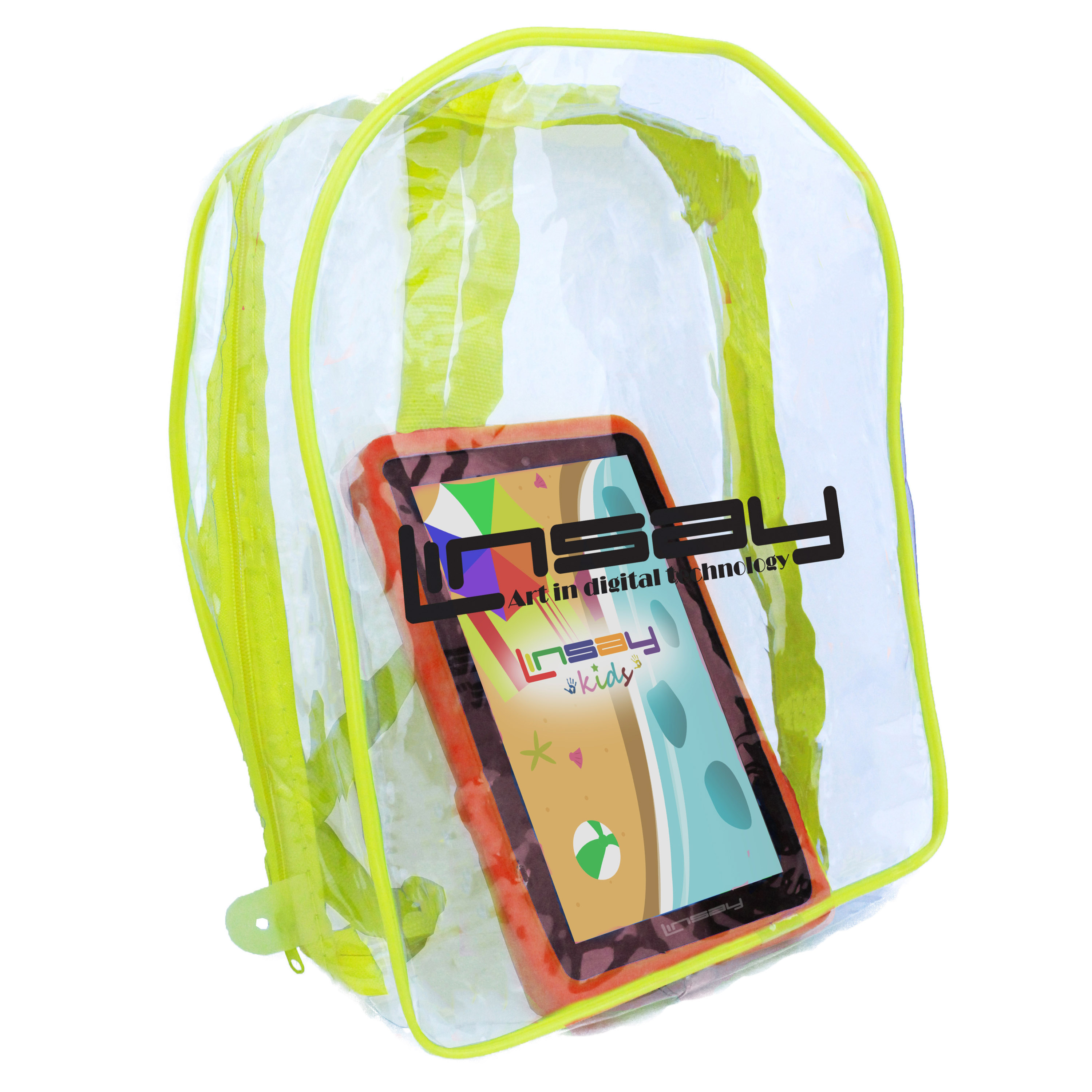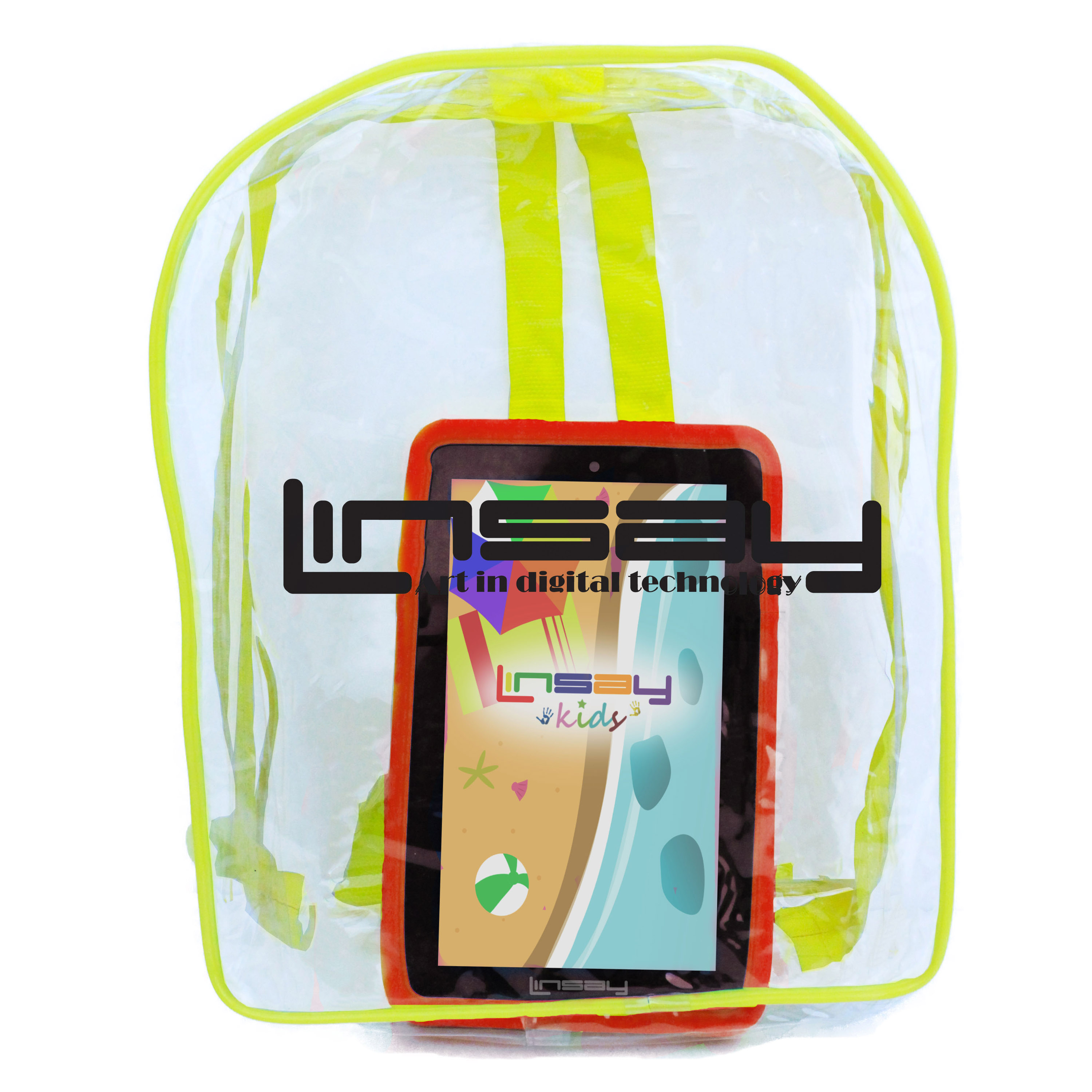 LINSAY F7XHDKIDSBAGR has a high resolution display 1024x600 HD Panel Screen widescreen 16:9 for an incredible multimedia experience. It also has a Built in Front Web Camera 0.3Mp for Video Live chat and a 2.0Mp Built in Back Camera to take stunning photos and videos.
