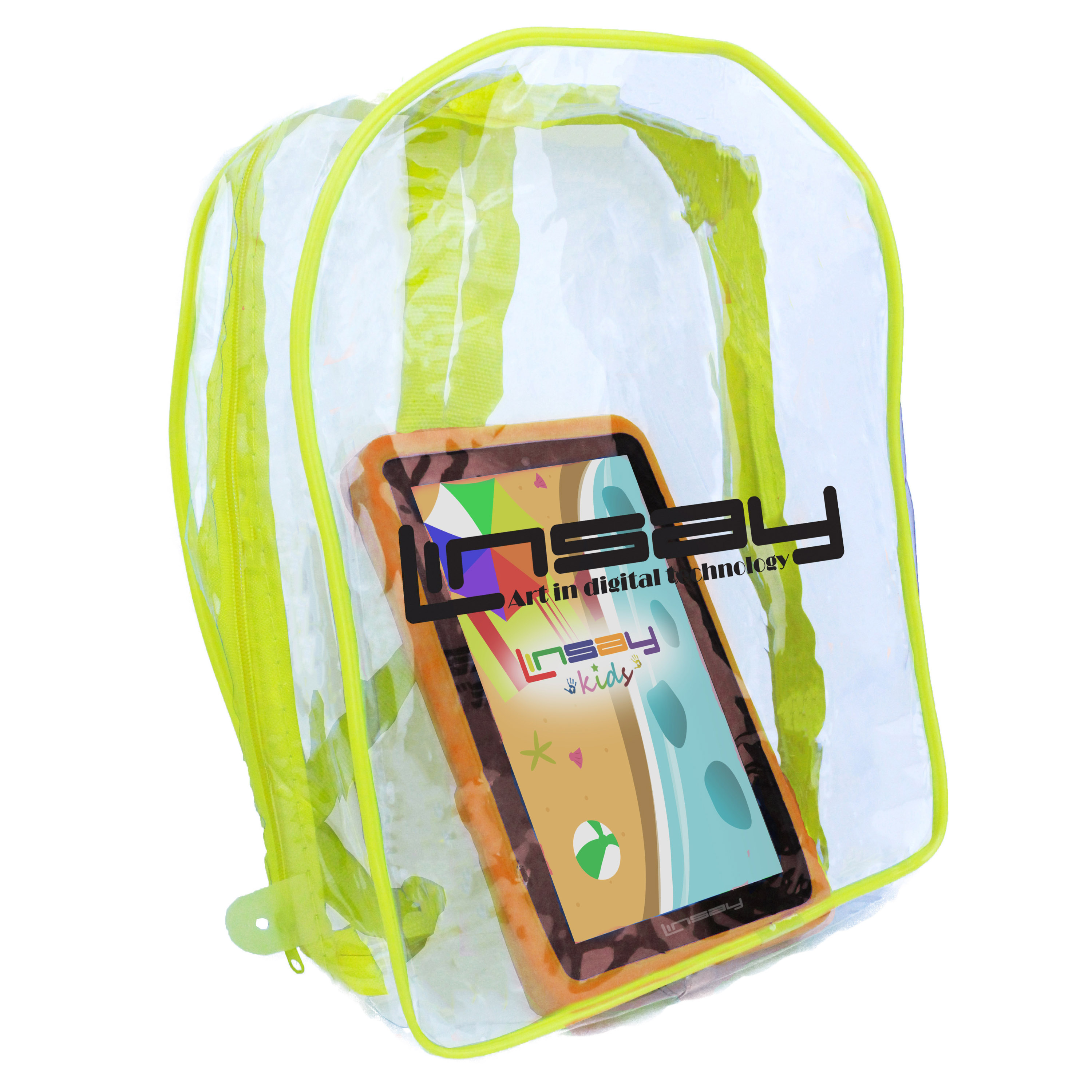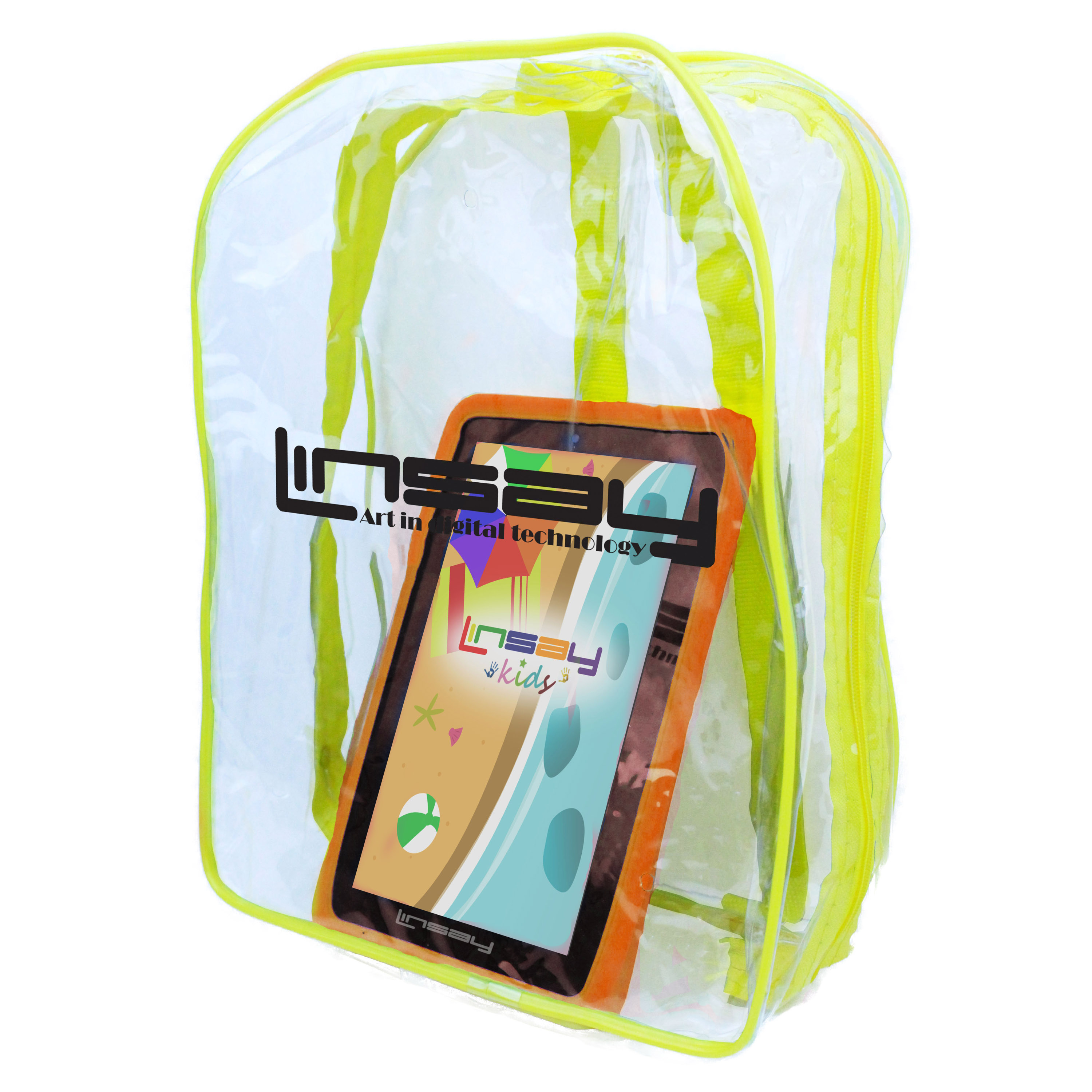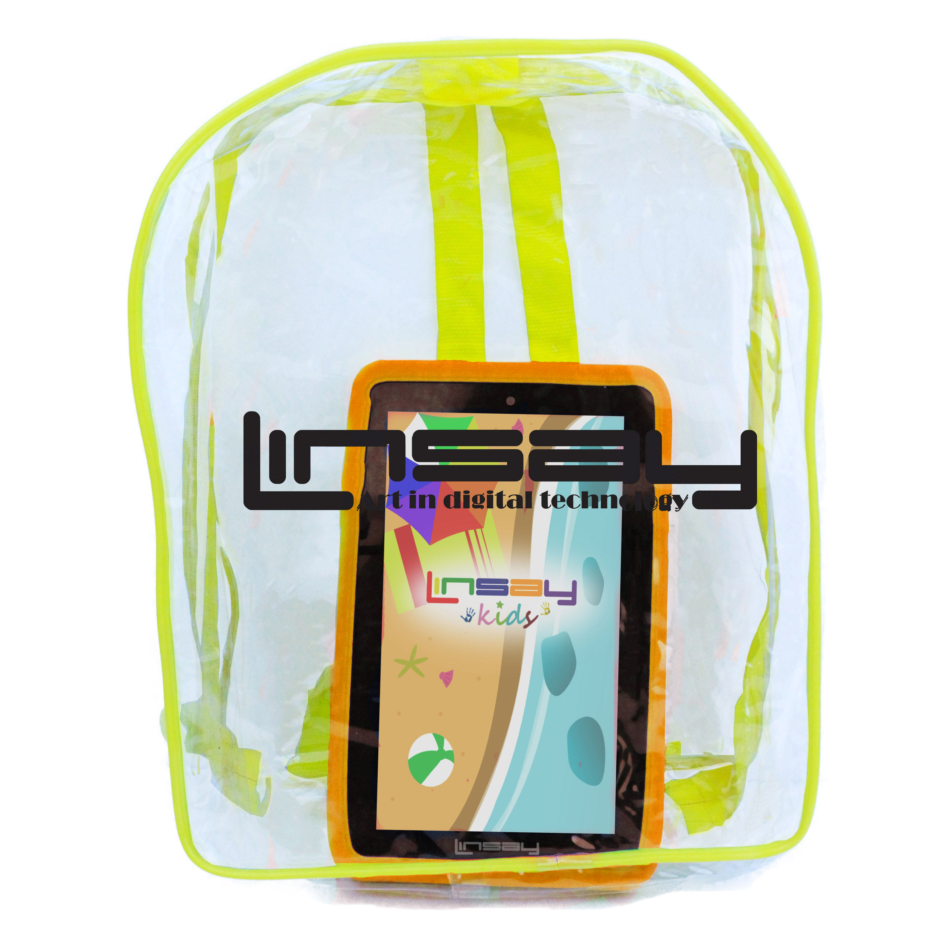 LINSAY F7XHDKIDSBAGO has a high resolution display 1024x600 HD Panel Screen widescreen 16:9 for an incredible multimedia experience. It also has a Built in Front Web Camera 0.3Mp for Video Live chat and a 2.0Mp Built in Back Camera to take stunning photos and videos.
